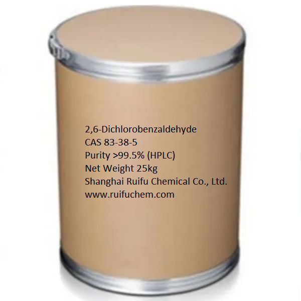 Ruifu Chemical é o principal fabricante e fornecedor de 2,6 - Diclorobenzaldeído (CAS: 83 - 38 - 5) com alta qualidade e capacidade de produção de 500 toneladas por ano. A Ruifu Chemical pode fornecer entrega em todo o mundo, preços competitivos, quantidades pequenas e a granel disponíveis. Se você estiver interessado em 2,6-Diclorobenzaldeído, envie-nos informações detalhadas, incluindo número CAS, nome do produto e quantidade.Entre em contato: alvin@ruifuchem.com