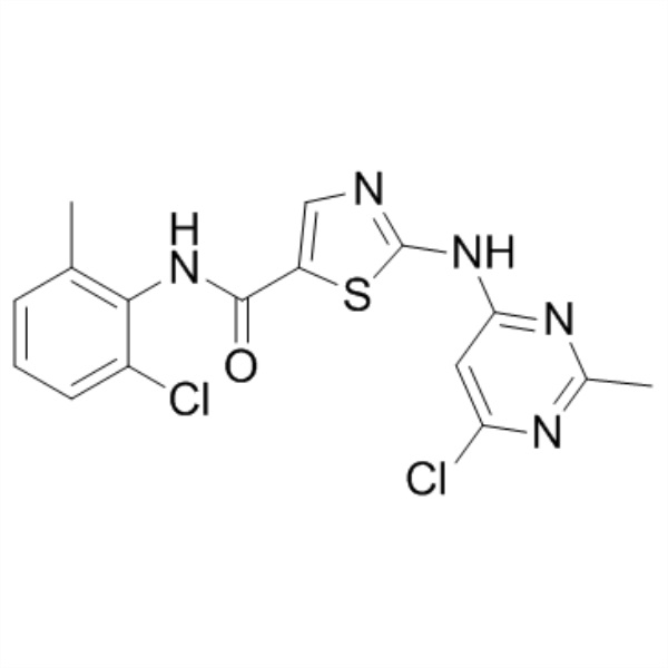 N-(2-Cloro-6-Metilfenil)-2-[(6-Cloro-2-Metil-4-Pirimidinil)amino]-5-Tiazolcarboxamida (CAS: 302964-08-5), intermediário de Dasatinibe (CAS: 302962-49-8) e Dasatinibe Monohidrato (CAS: 863127-77-9). Dasatinibe é usado em todos os estágios da leucemia mielóide crônica que foram tratados, incluindo Mesilato de Imatinibe/Gleevec resistente ou intolerável (fase crônica, fase acelerada, fase blástica de células linfóides e leucemia mieloide). Estágio de explosão celular) pacientes adultos. Ao mesmo tempo, a FDA também aprovou o Dasatinib para tratar pacientes adultos positivos para o cromossomo Filadélfia com leucemia linfoblástica aguda que são resistentes ou intolerantes a outras terapias através de procedimentos normais.