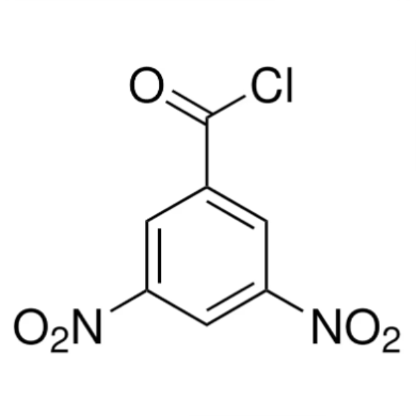 O Cloreto de 3,5-Dinitrobenzoíla é utilizado como reagente para determinação de diversos álcoois, também utilizado em síntese orgânica. Reagentes de rotulagem para HPLC. Este composto aromático é utilizado por químicos para identificar componentes alcoólicos em ésteres e na análise fluorométrica da creatinina.