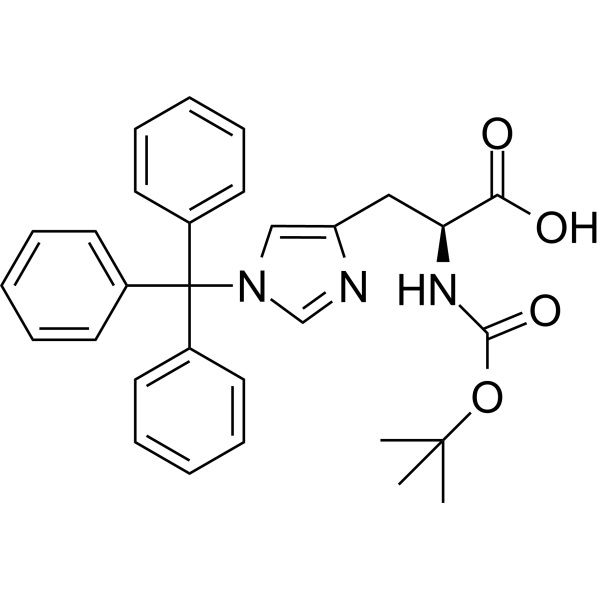 Boc-His(Trt)-OH (CAS: 32926-43-5) é um derivado de histidina. É um derivado de histidina protegido apenas para a etapa crítica de acoplamento. Após acoplar o Boc- e os grupos Trt- são clivados simultaneamente pelo TFA.