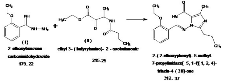 2-(2-Etoxifenil)-5-Metil-7-Propilimidazo[5,1-F][1,2,4]triazin-4(3H)-ona (CAS: 224789-21-3) é um intermediário de Vardenafil (CAS: 224785-90-4) / Cloridrato de Vardenafil (CAS: 224785-91-5). Vardenafil é um novo inibidor da PDE5 lançado para tratamento oral da disfunção erétil masculina e apresenta semelhança estrutural significativa com o sildenafil (Viagra), que foi o primeiro inibidor da PDE5 introduzido em 1998 para esta indicação.