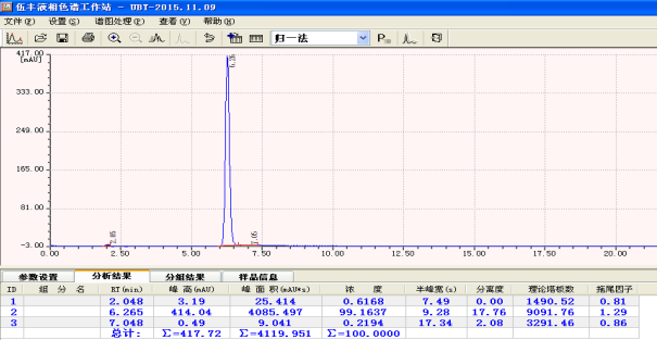 Fase Móvel: Acetonitrila: Água = 70:30 (0,01 mol/l de dihidrogenofosfato de potássio e 0,4 g em 300 ml de água de alta pureza).