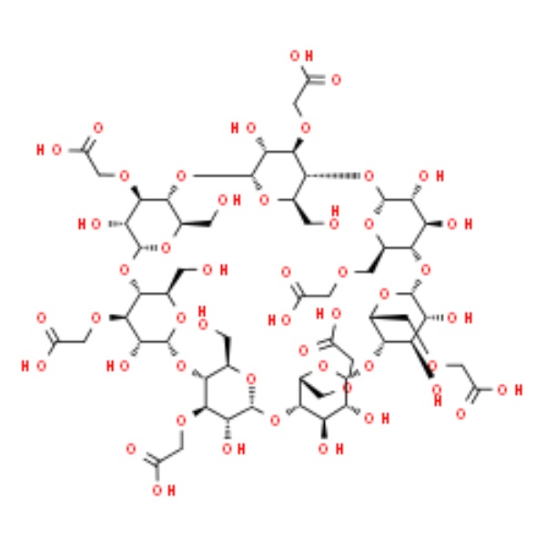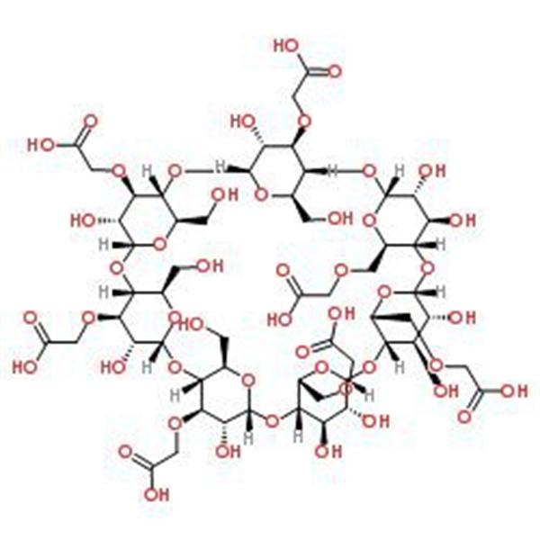 Carboximetil-β-Ciclodextrina (CM-β-CD; CMBCD) (CAS: 218269-34-2), Em solução com pH<4, a solubilidade da Carboximetil-β-Ciclodextrina (CM-β-CD) é baixa. Mas em solução de pH> 4 em que o grupo carboxila se dissocia, CM - β - CD pode ser dissolvido em água em qualquer concentração. Possui boa solubilidade no ambiente intestinal humano cujo pH é 6-7. CM-β-CD que tem menor hemólise queHP-β-CD (CAS: 128446-35-5)pode ser usado em formulações de liberação prolongada.