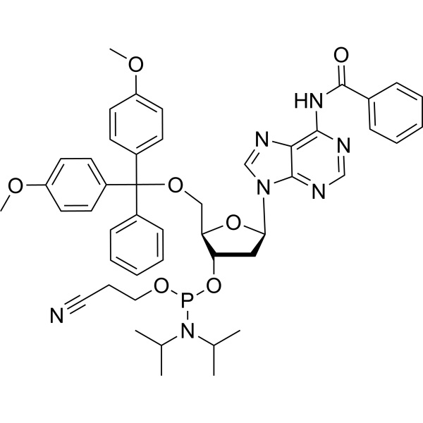 | Sinônimos | DMT-dA(bz) Amidita; dA(N-Bz) Fosforamidita; DA-CE Fosforamidita; DMT-dA(Bz)-CE-Fosforamidita; 5'-O-DMT-N6-Benzoil-2'-Desoxi Adenosina Fosforamidita; 5'-O-(4,4'-Dimetoxitritil)-N6-Benzoil-2'-Desoxiadenosina-3'-(2-Cianoetil-N,N-Diisopropil)fosforamidita; N-Benzoil-5'-O-(4,4'-Dimetoxitritil)-2'-Desoxiadenosina-3'-(2-Cianoetil-N,N-Diisopropil)fosforamidita; N-Benzoil-5'-O-[bis(4-Metoxifenil)(fenil)metil]-3'-O-[(2-Cianoetoxi)(diisopropilamino)fosfino]-2'-Desoxiadenosina |