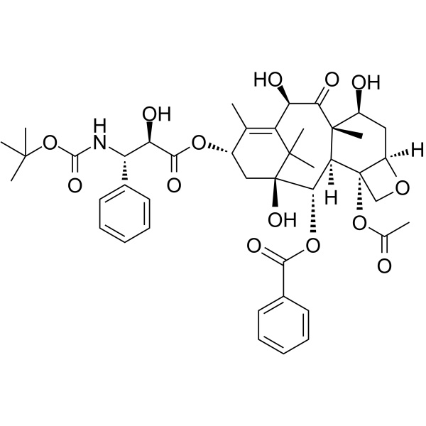 Docetaxel (Taxotere) (CAS: 114977 - 28 - 5) vendido como Taxotere ou Docecad, é um medicamento quimioterápico antimitótico bem estabelecido que atua interferindo na divisão celular. O docetaxel é aprovado pelo FDA para o tratamento de câncer de mama localmente avançado ou metastático, câncer de cabeça e pescoço, câncer gástrico, câncer de próstata refratário a hormônios e câncer de pulmão de células não pequenas. O docetaxel pode ser usado como agente único ou em combinação com outros medicamentos quimioterápicos, conforme indicado, dependendo do tipo e estágio específico do câncer. O docetaxel é um membro da classe de medicamentos taxanos, que também inclui o medicamento quimioterápico paclitaxel. Embora o docetaxel permaneça duas vezes mais potente que o paclitaxel (devido ao efeito do docetaxel no centrossoma do fuso mitótico), observou-se que os dois taxanos têm eficácia comparável. Vários artigos recentes não encontraram “nenhuma evidência de que regimes contendo docetaxel produzam maiores benefícios do que aqueles que incluem paclitaxel”. Embora a eficácia entre os dois agentes tenha sido equivalente, o paclitaxel pode causar menos efeitos colaterais. Além disso, observou-se que o docetaxel é propenso à resistência celular aos medicamentos através de uma variedade de mecanismos diferentes.