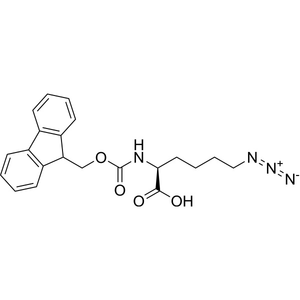 | Sinônimos | Fmoc-L-Lys(N3)-OH; Fmoc-ε-Azido-Nle-OH; Fmoc-Azidolisina; Fmoc-L-Azidolisina; 6-Azido-N-Fmoc-L-Norleucina; Nα-Fmoc-Nε-Azida-L-Lisina; N-alfa-Fmoc-épsilon-Azido-L-Lisina; N6-Diazo-L-Fmoc-Lisina; N-Fmoc-6-Azidonorleucina; 6-Azido-N-[(9H-fluoren-9-ilmetoxi)carbonil]-L-Norleucina; Nα-9-Fluorenilmetoxicarbonil-ε-Azido-L-Lisina |