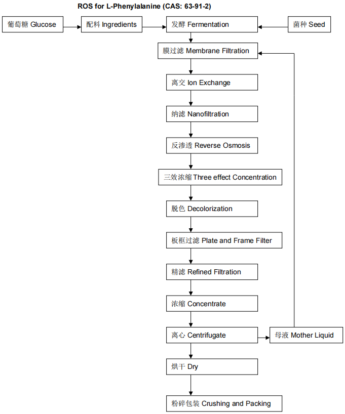 L-Fenilalanina (H-Phe-OH) (CAS: 63-91-2) é um aminoácido essencial e é a única forma de fenilalanina encontrada nas proteínas. É um dos 18 aminoácidos comuns e um dos oito aminoácidos essenciais do corpo humano. L-Fenilalanina é produzida para aplicações médicas, rações e nutricionais, como na preparação de Aspartame. Como suplemento nutricional, a L-Fenilalanina pode ser vista como um grupo benzila substituído pelo grupo metil da alanina, ou um grupo fenila no lugar de um hidrogênio terminal da alanina. A maior parte no corpo pela oxidação catálise da fenilalanina hidroxilase em tirosina, e sintética com tirosina, importantes neurotransmissores e hormônios, para participar do metabolismo corporal do açúcar e do metabolismo da gordura. L-Fenilalanina é um aminoácido aromático bioativo. É um aminoácido necessário que não pode ser autossintetizado por humanos e animais. É necessário que uma pessoa ingira 2,2g de L-Fenilalanina todos os dias. L-Fenilalanina tem sido amplamente utilizada na indústria farmacêutica e de aditivos alimentares. É um ingrediente importante da injeção de aminoácidos. Na indústria de processamento de alimentos, a L-Fenilalanina pode ser adicionada em alimentos de panificação. E a nutrição da fenilalanina pode ser melhorada pela amido-carboxilação com glicídio. L-Fenilalanina pode realçar o aroma dos alimentos e manter o equilíbrio dos aminoácidos necessários. Na indústria farmacêutica, L-Fenilalanina é usada como intermediário de alguns produtos farmacêuticos amino anticancerígenos, como formilmerfalano e etc. L-Fenilalanina é a principal matéria-prima do adoçante Aspartame, um dos aminoácidos essenciais do corpo humano. É usado principalmente na indústria farmacêutica para infusão de aminoácidos e medicamentos com aminoácidos. A indústria alimentícia é utilizada principalmente como matéria-prima sintética para o adoçante alimentar aspartame; também pode ser utilizado como suplemento nutricional e intensificador de sabor, é utilizado na fabricação de produtos alimentícios e bebidas, como panificação.