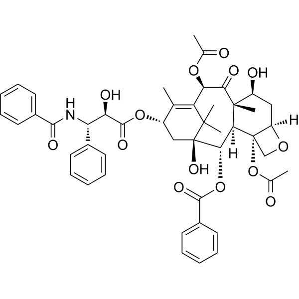 Paclitaxel (Taxol) (CAS: 33069-62-4) é um composto orgânico altamente complexo isolado da casca do teixo do Pacífico. Liga-se aos dímeros de tubulina e aos filamentos de microtubulina, promovendo a montagem dos filamentos e evitando a sua despolimerização. Este aumento na estabilidade dos microfilamentos resulta na interrupção da mitose e da citotoxicidade e perturba outras funções microtubulares normais, como o transporte axonal nas fibras nervosas. O principal mecanismo de resistência identificado para o paclitaxel é o transporte para fora das células tumorais, o que leva à diminuição do acúmulo intracelular do medicamento. Esta forma de resistência é mediada pelo transportador multidrogas P-glicoproteína.