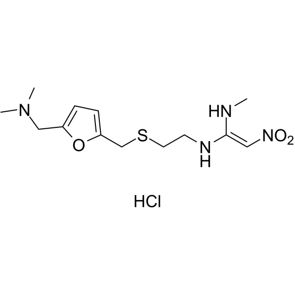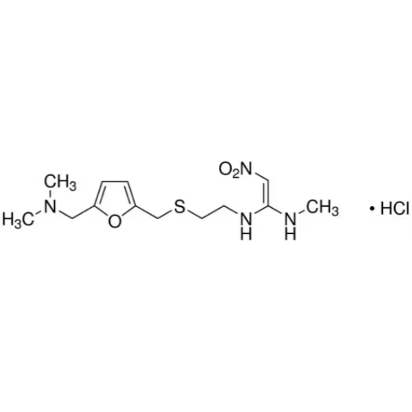 | Sinônimos | Ranitidina HCl; Zantac; Zantadina; Zintac; Noctona; N-[2-[5-[(Dimetilamino)metil]furfuriltio]etil]-N'-Metil-2-Nitro-1,1-Cloridrato de etenodiamina; Cloridrato de N,N Dimetil-5-[2-(1-Metilamina-2-Nitrovinil)-Etiltiometil]furfurilamina |