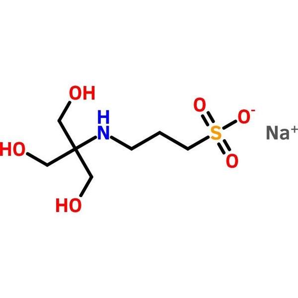 O sal de sódio TAPS (CAS: 91000-53-2) é um tampão biológico zwitteriônico frequentemente usado como agente tampão em pesquisas biológicas e bioquímicas. TAPS, é usado em bioquímica e biologia molecular. TAPS tem sido utilizado em eletroforese capilar de materiais como DNA e complexos de DNA-corante. Os corantes foram separados por cromatografia planar com fluxo eletroosmótico com TAPS 1 mM na fase móvel. As constantes de estabilidade de íons metálicos com TAPS foram investigadas por eletroforese capilar. Também foi demonstrado que o TAPS inibe a atividade do canal de conexina. A atividade de vários mutantes da anidrase carbônica I e da anidrase carbônica II foi estudada em uma variedade de tampões, incluindo TAPS.